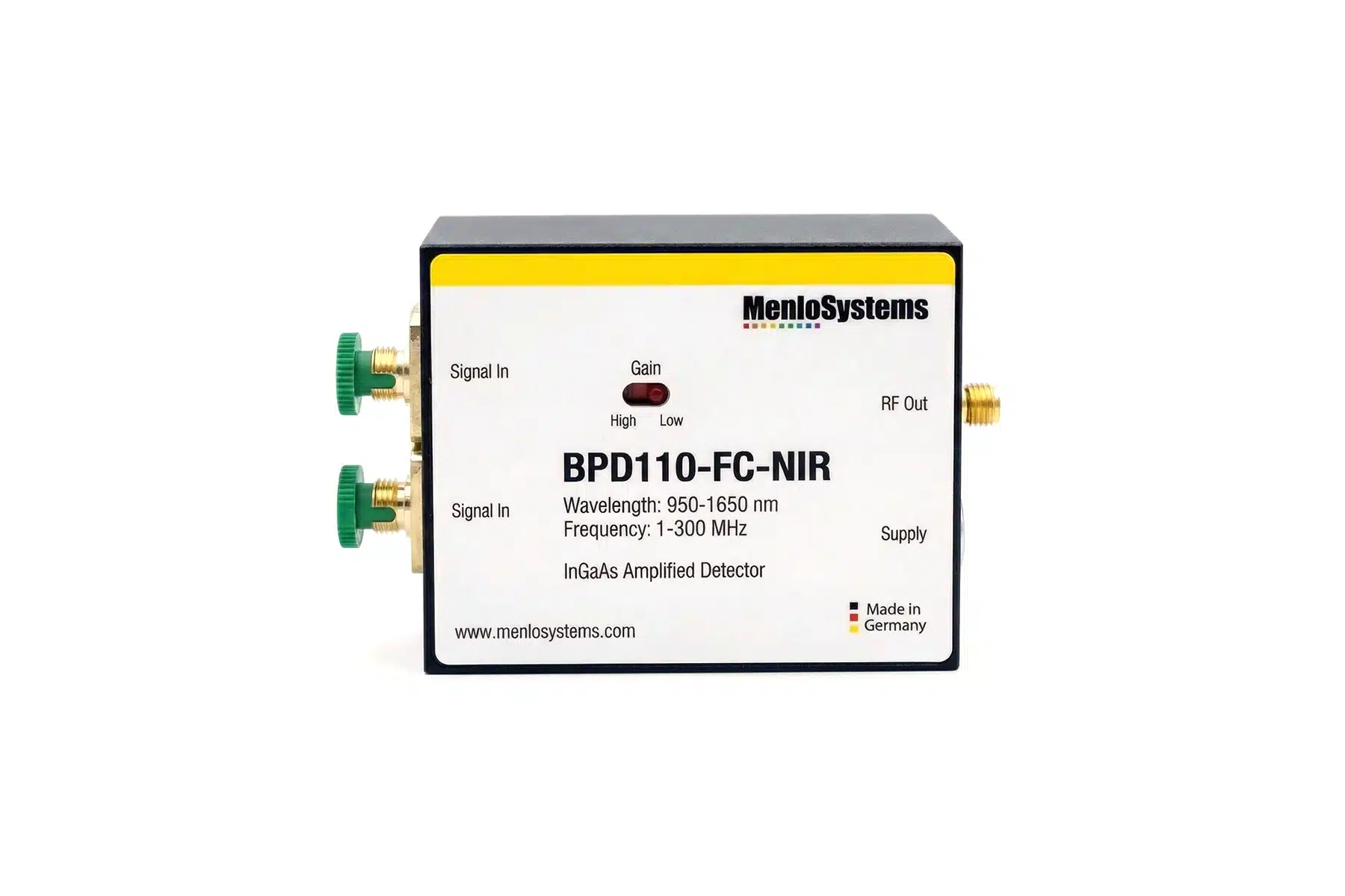 The BPD110 balanced photodetector from Menlo Systems functions as a balanced