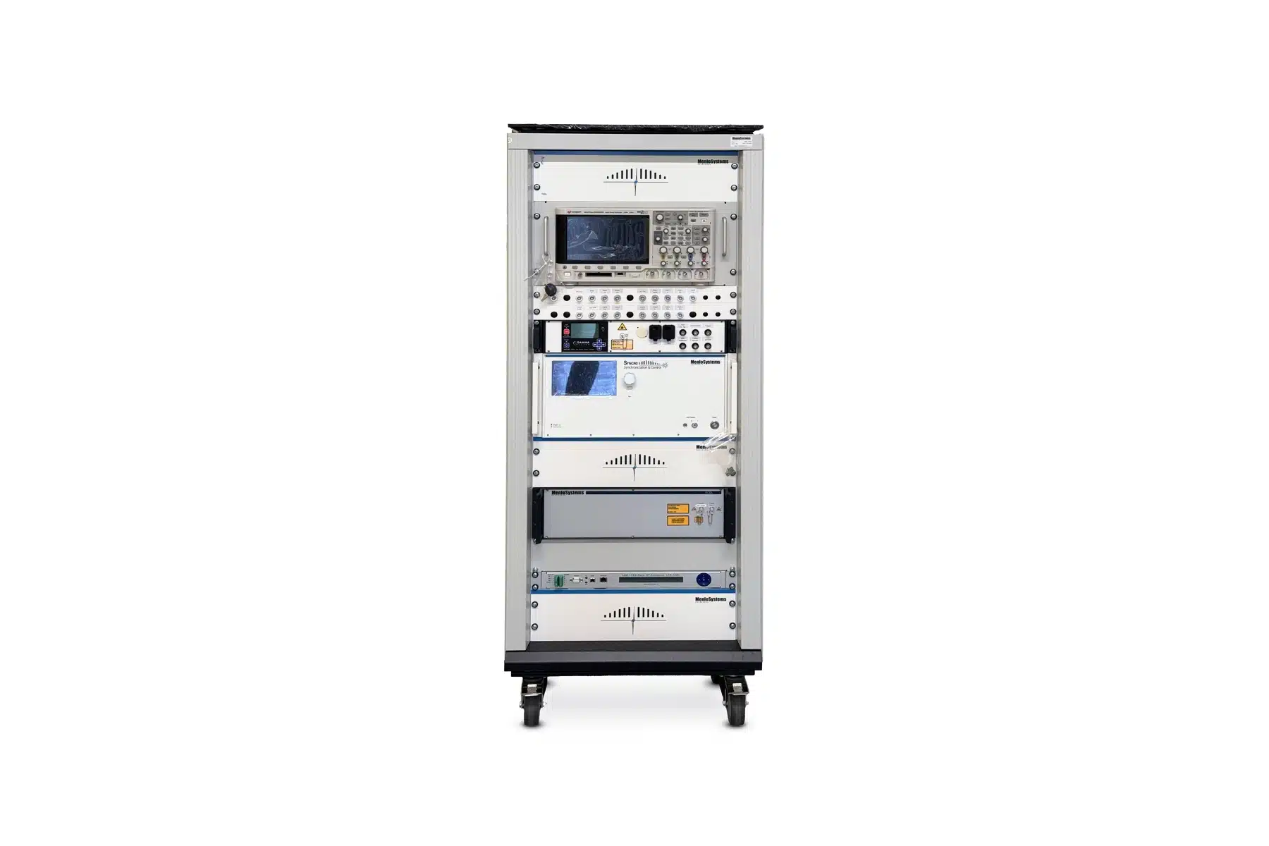 All-in-one solution including the optical setup, electronics and fiber rack, and cooling system.